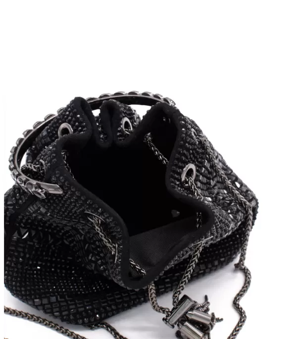 Bolso De Cuero Hecho De Cuero. Asa Metálica Circular Y Cadena Metálica Con Función Bandolera. Forro Interior Textil.