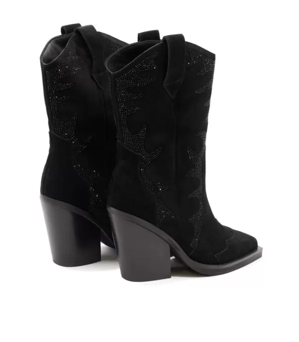 Bota Cowboy Para Mujer Realizada En Piel Con Puntera En Punta Y Tacón Cuadrado Con Detalle De Pedrería. La Altura Del Tacón Es De 10 Cm.