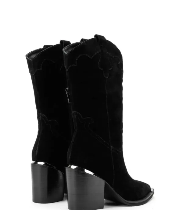 Bota Vaquera Con Tacón Realizada En Piel. Estatura Media. Tacón De Bloque. La Altura Del Tacón Es De 8 Cm.