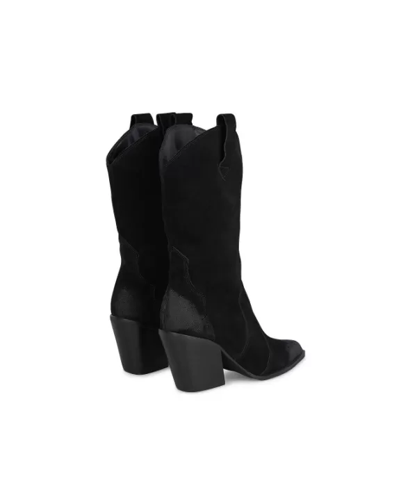 Botines Vaqueros Con Tacón En Punta Y Tacón En Bloque. La Altura Del Tacón Es De 8 Cm.