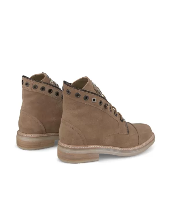 Botines 100% Piel. Detalles De Pedrería En La Lengüeta Y Detalle De Cremallera En La Parte Superior De La Caña. Cierre Con Cordones. La Altura Del Talón Es