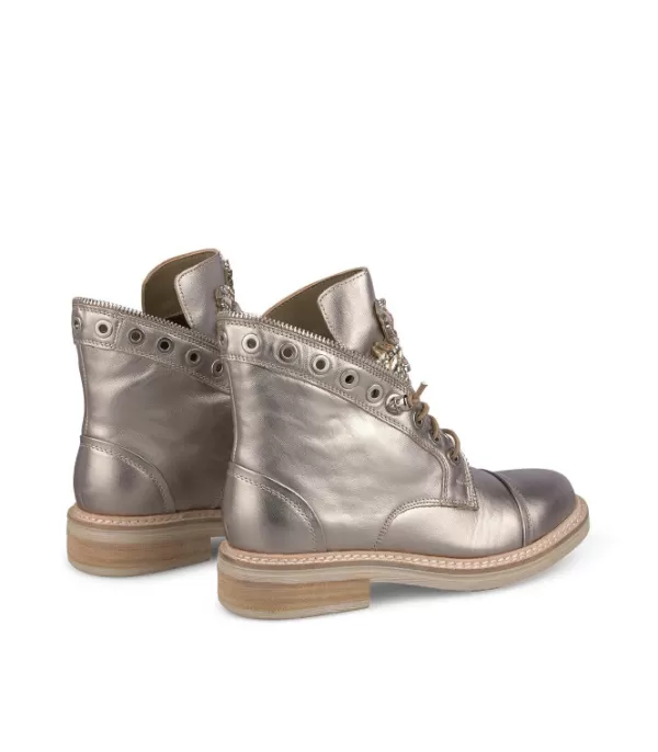 Botines 100% Piel. Detalles De Pedrería En La Lengüeta Y Detalle De Cremallera En La Parte Superior De La Caña. Cierre Con Cordones. La Altura Del Talón Es
