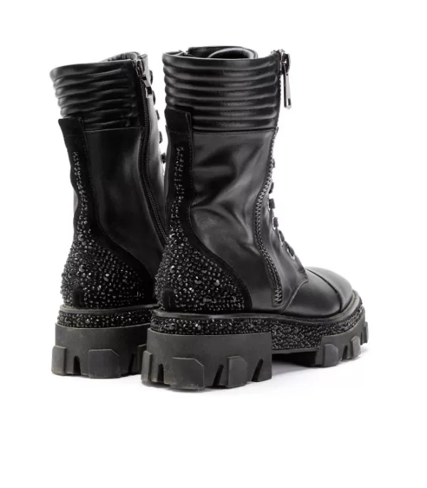 Botines De Mujer Con Detalle De Pedrería En Talón Y Suela. Plataforma Plana. Cierre De Cremallera. La Altura Del Tacó…