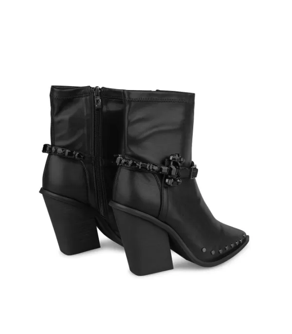 Botines De Mujer Elaborados En Piel Con Tachuelas En La Puntera Y Detalle De Pedrería En El Talón. Puntera Cónica Y Tacón En Bloque. La Altura Del Talón Es