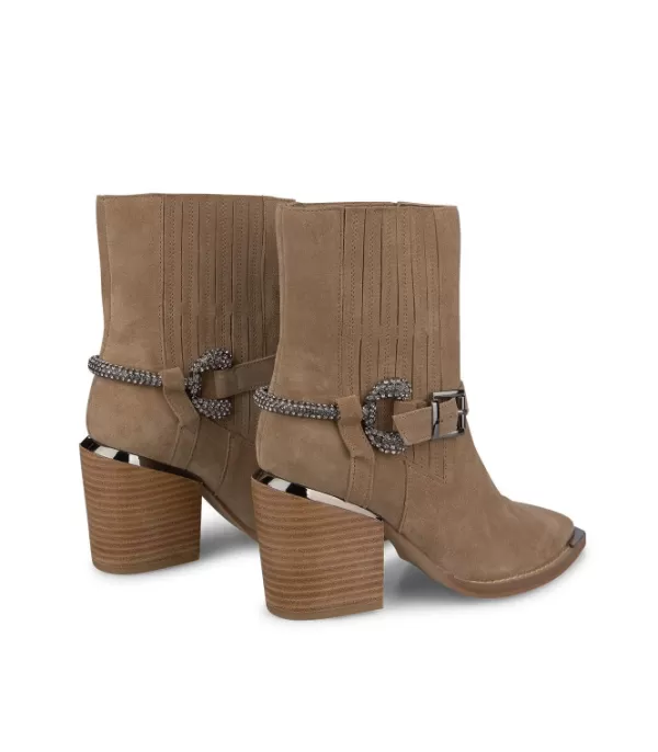 Botines Confeccionados En Piel Con Detalle De Cinturón De Pedrería. Punta Cuadrada, Tacón En Bloque. La Altura Del Tacón Es De 8 Cm.