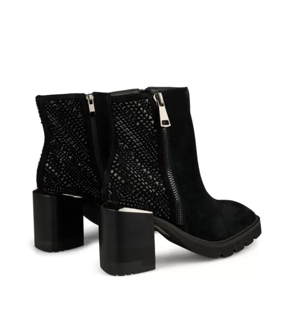 Botines De Mujer De Piel Con Cremallera Lateral Y Detalle De Pedrería En La Parte Trasera. Punta Redondeada Y Tacón En Bloque. La Altura Del Tacón Es De 9 Cm.