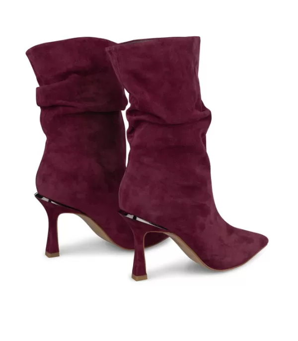 Botines Confeccionados En Piel Con Puntera En Punta Y Caña Arrugada. Tacón De Aguja. La Altura Del Tacón Es De 8,8 Cm.