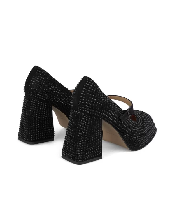 Sandalia De Tacón Cuadrado Recubierta De Pedrería. Cierre Con Hebilla. Punta Cuadrada. La Altura Del Tacón Es De 9,5 …