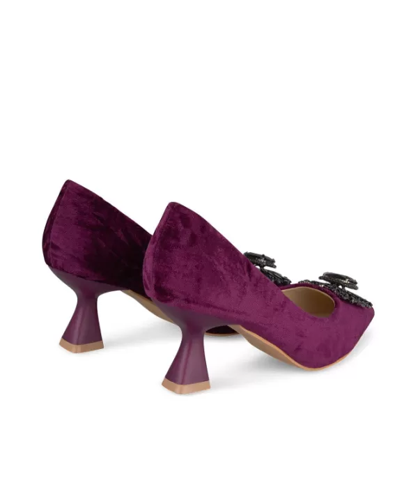 Zapatos Con Tacón Embudo Y Broche De Pedrería. Punta Puntiaguda. La Altura Del Tacón Es De 6 Cm.