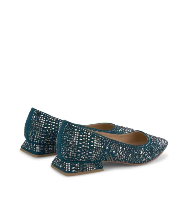 Bailarina Realizada En Piel Recubierta De Pedrería. Punta Puntiaguda. La Altura Del Tacón Es De 2,3 Cm.
