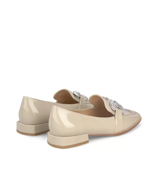 Zapato Plano Realizado En Piel Con Adorno De Estribo Cubierto De Pedrería. La Altura Del Tacón Es De 2,3 Cm.