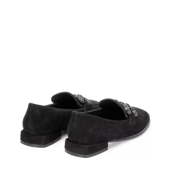 Zapato Plano Realizado En Piel Con Adorno De Estribo Cubierto De Pedrería. La Altura Del Tacón Es De 2,3 Cm.