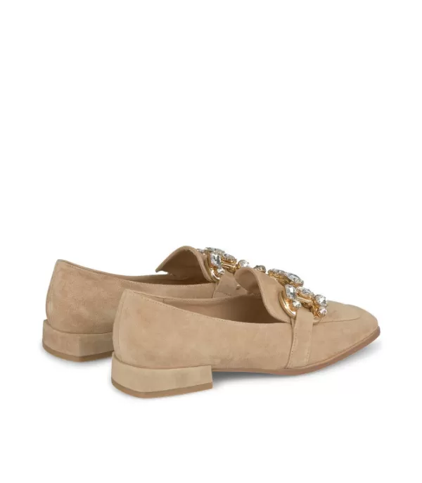 Zapato Plano Realizado En Piel Con Adorno De Estribo Cubierto De Pedrería. La Altura Del Tacón Es De 2,3 Cm.