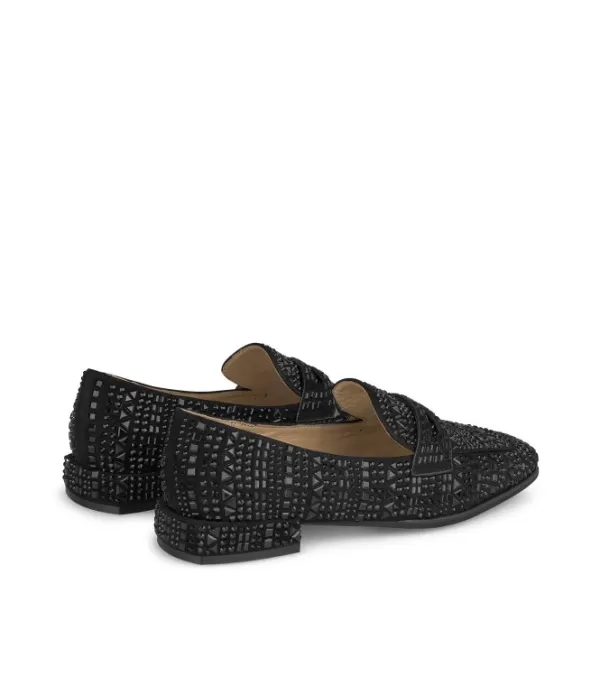 Zapato Plano Realizado En Piel Recubierto De Pedrería. La Altura Del Tacón Es De 2,3 Cm.