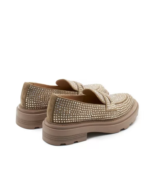 Zapato Plano Con Plataforma Realizado En Piel Recubierto De Pedrería. La Altura Del Tacón Es De 3,8 Cm.