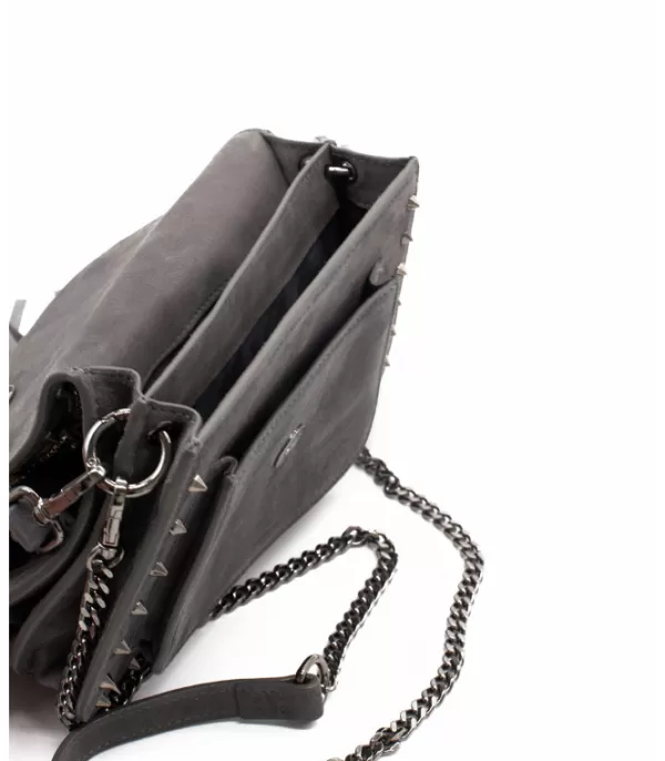Mini Bolso Bandolera Con Detalle De Joya, Glitter Y Tachuelas En La Solapa Delantera. Correa De Mano Y Correa Larga De Cadena Metálica Con Correa Para El Hombro.