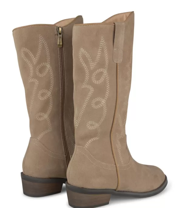 Bota De Mujer Con Bordado. Puntera Redondeada Y Plataforma Plana. La Altura Del Tacón Es De 3 Cm.