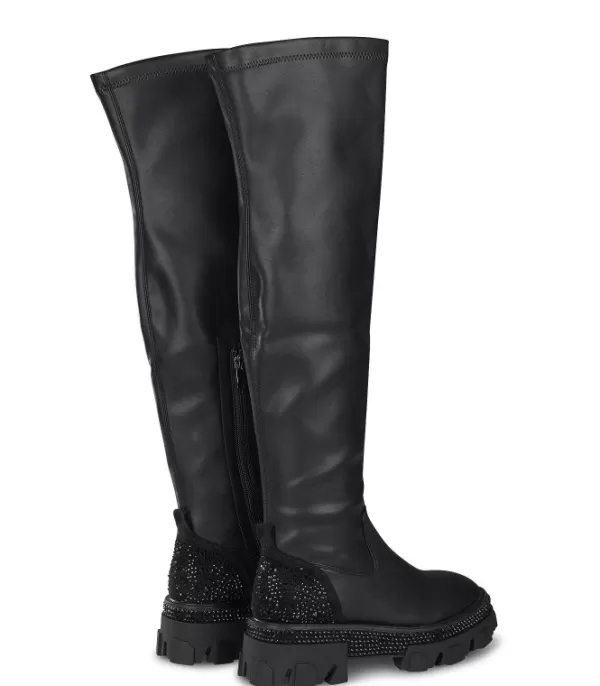 Bota De Mujer Con Plataforma Plana Y Detalle De Pedrería En El Talón. Cierre Con Cremallera Invisible. La Altura Del Tacón Es De 7 Cm.