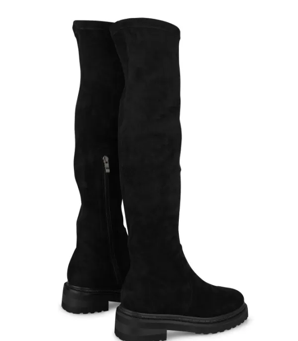 Bota Confeccionada En Piel Con Caña Alta. Plataforma Plana Y Puntera Redondeada. La Altura Del Tacón Es De 5 Cm.