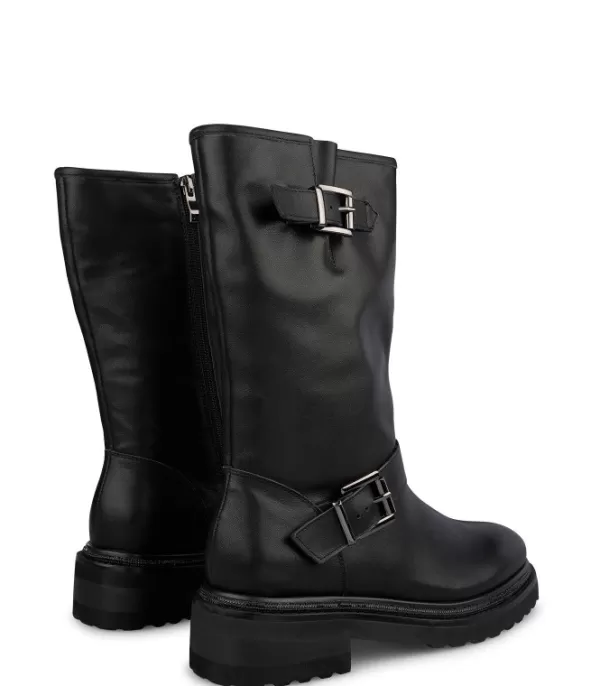 Botas De Mujer De Piel Con Dos Hebillas En La Caña. Puntera Redondeada Y Plataforma Plana. Cierre De Cremallera. La Altura Del Tacón Es De 5 Cm.