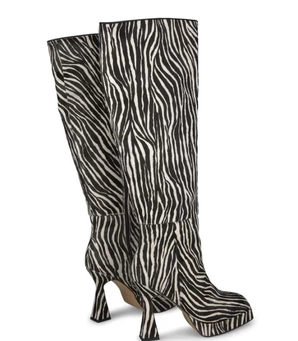 Bota Hecha De Cuero. Eje Alto Y Puntera Cuadrada. Cierre De Cremallera Invisible Y Tacón Embudo. La Altura Del Tacón Es De 10 Cm.