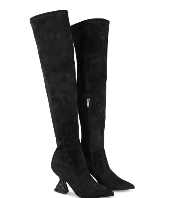 Bota Mosquetero Realizada En Piel. Con Puntera Puntiaguda Y Tacón Embudo. El Talón Está Cubierto De Pedrería. La Altura Del Tacón Es De 9 Cm.