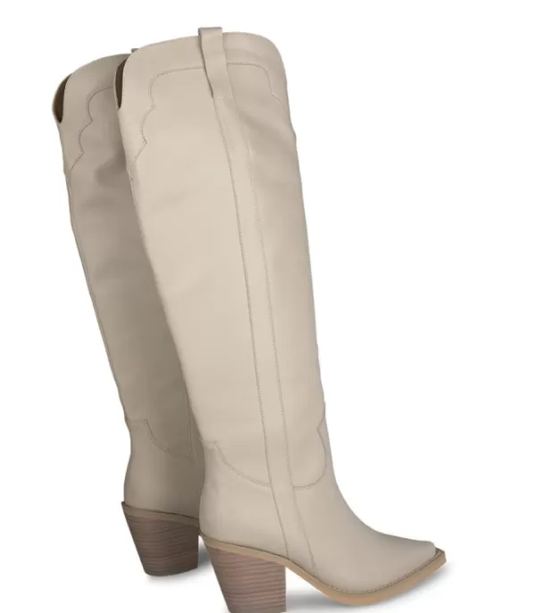 Bota De Mujer Confeccionada En Piel Con Puntera En Punta Y Tacón En Bloque. La Altura Del Tacón Es De 8,5 Cm.