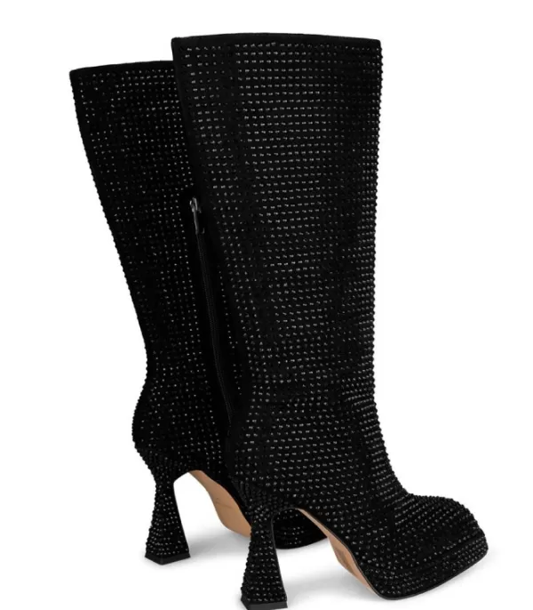 Bota Realizada En Piel Recubierta De Pedrería. Puntera Cuadrada, Cierre De Cremallera Y Tacón Embudo. La Altura Del Tacón Es De 10 Cm.