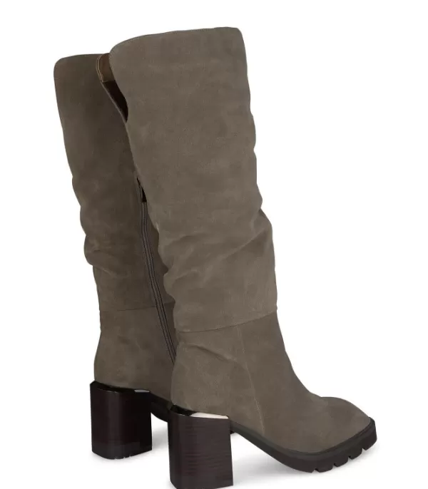 Botas De Mujer Realizadas En Piel Con Parte Superior Arrugada. Punta Redondeada Y Tacón En Bloque. La Altura Del Tacón Es De 9 Cm.