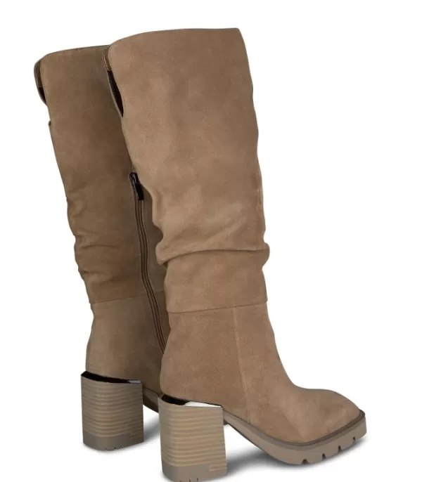 Botas De Mujer Realizadas En Piel Con Parte Superior Arrugada. Punta Redondeada Y Tacón En Bloque. La Altura Del Tacón Es De 9 Cm.