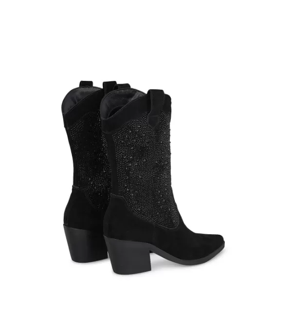 Botines Cowboy Con Detalle De Glitter. Con Puntera En Punta Y Tacón En Bloque. La Altura Del Tacón Es De 8 Cm.