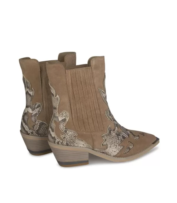 Botines Cowboy Con Caña Baja Y Bordado. Punta Puntiaguda Y Tacón En Bloque. La Altura Del Tacón Es De 5,5 Cm.