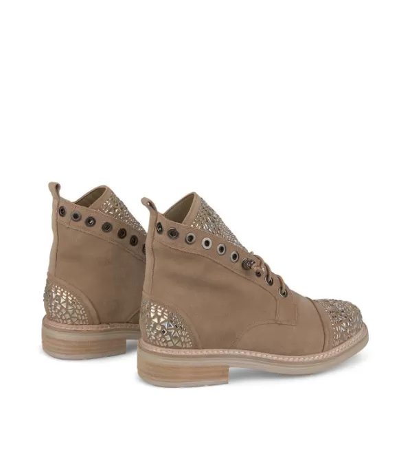 Botines De Mujer Realizados En Piel. Adorno De Diamantes De Imitación En La Puntera Redondeada. Plataforma Plana. La Altura Del Tacón Es De 3 Cm.