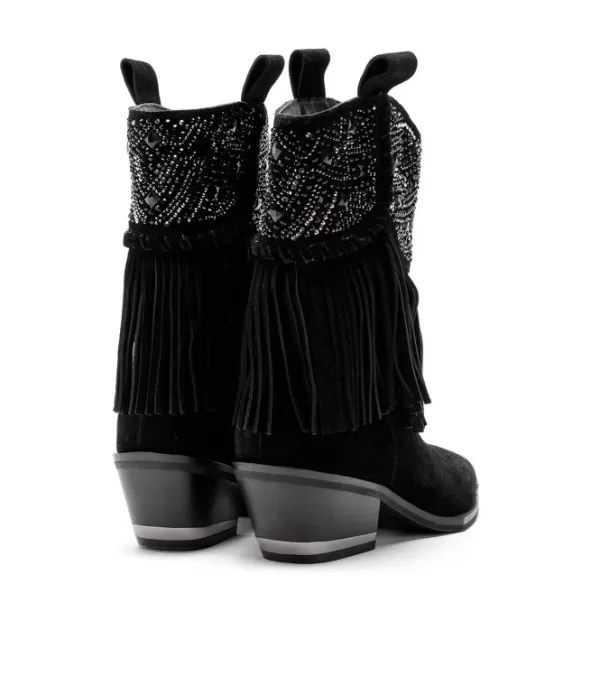 Botines Planos Con Detalle De Flecos Y Pedrería. La Altura Del Tacón Es De 5,5 Cm.