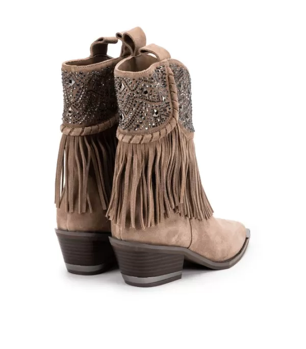 Botines Planos Con Detalle De Flecos Y Pedrería. La Altura Del Tacón Es De 5,5 Cm.