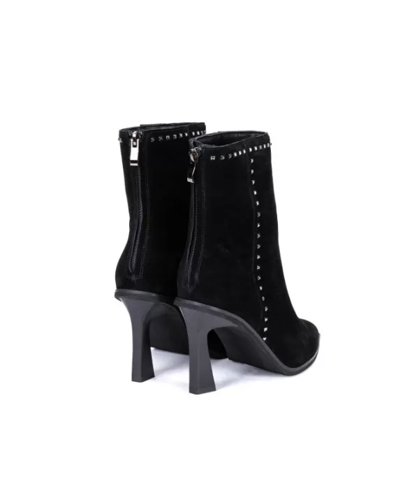 Botines Con Tacón Embudo Y Tachuelas. Cierre De Cremallera. La Altura Del Tacón Es De 8,7 Cm.