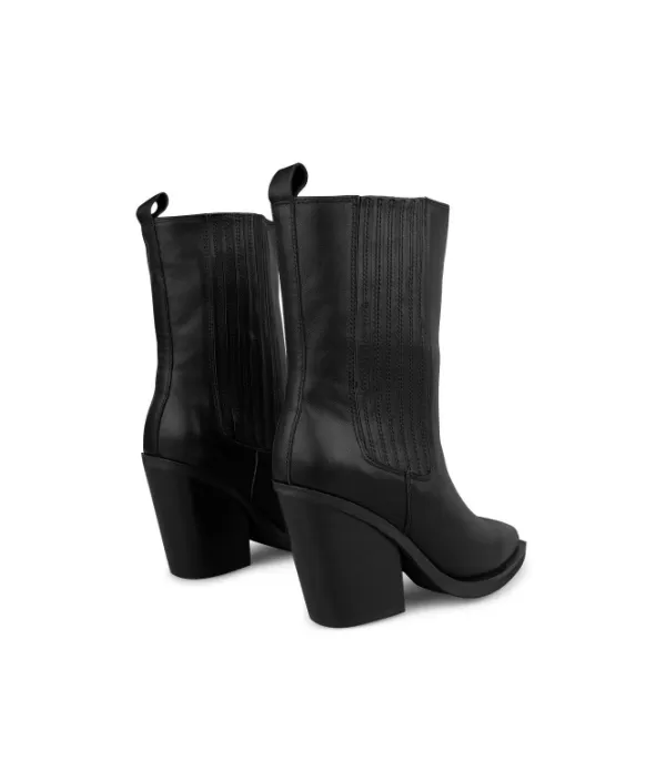Botines Confeccionados En Piel Con Puntera En Punta Y Tacón En Bloque. La Altura Del Tacón Es De 10 Cm.