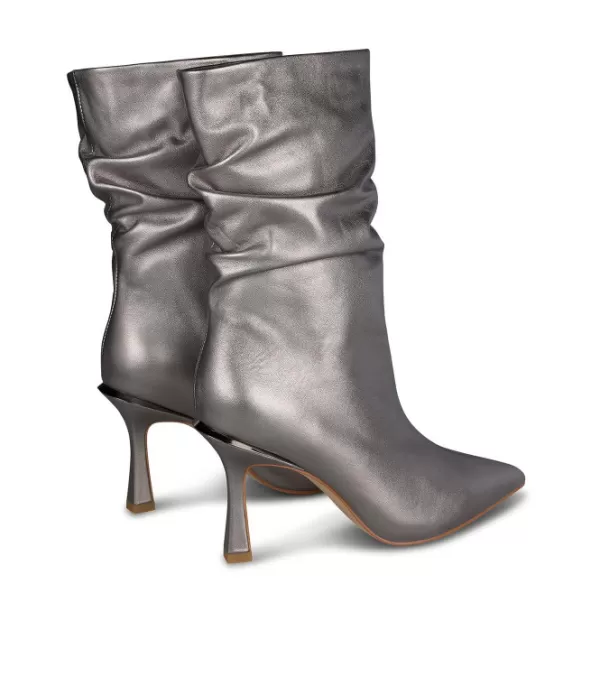 Botines Confeccionados En Piel Con Puntera En Punta Y Caña Arrugada. Tacón De Aguja. La Altura Del Tacón Es De 8,8 Cm.