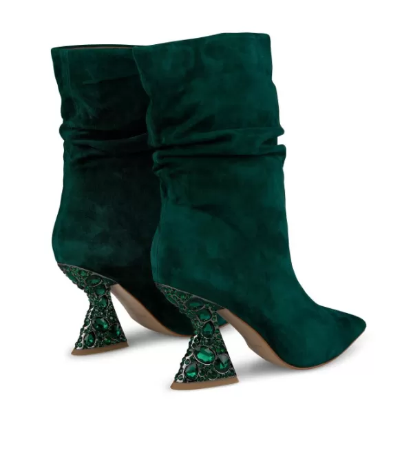 Botín De Tacón Con Caña Arrugada. Talón Cubierto De Pedrería. La Altura Del Tacón Es De 9 Cm.