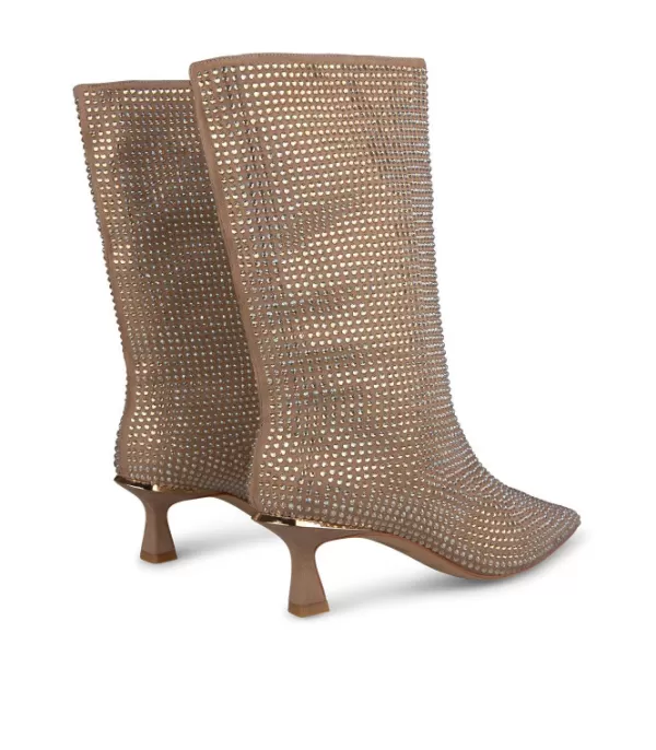 Botines De Tacón Realizados En Piel Recubierta De Pedrería. Punta Puntiaguda. Tacón De Aguja. La Altura Del Tacón Es De 6 Cm.