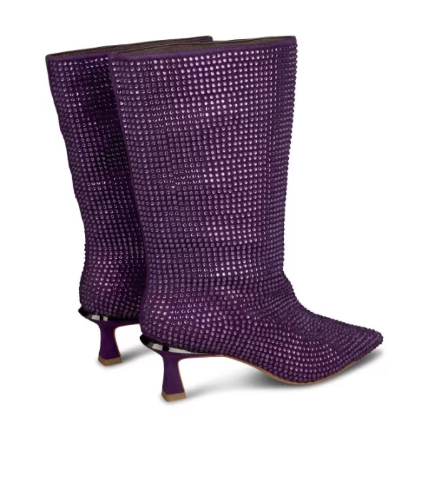 Botines De Tacón Realizados En Piel Recubierta De Pedrería. Punta Puntiaguda. Tacón De Aguja. La Altura Del Tacón Es De 6 Cm.