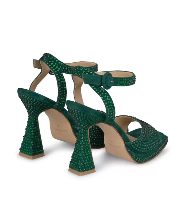 Sandalia Con Tacón Embudo. Cubierto Con Diamantes De Imitación. Cierre Con Hebilla. La Altura Del Tacón Es De 10 Cm.
