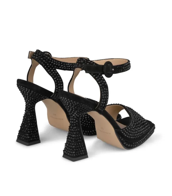 Sandalia Con Tacón Embudo. Cubierto Con Diamantes De Imitación. Cierre Con Hebilla. La Altura Del Tacón Es De 10 Cm.