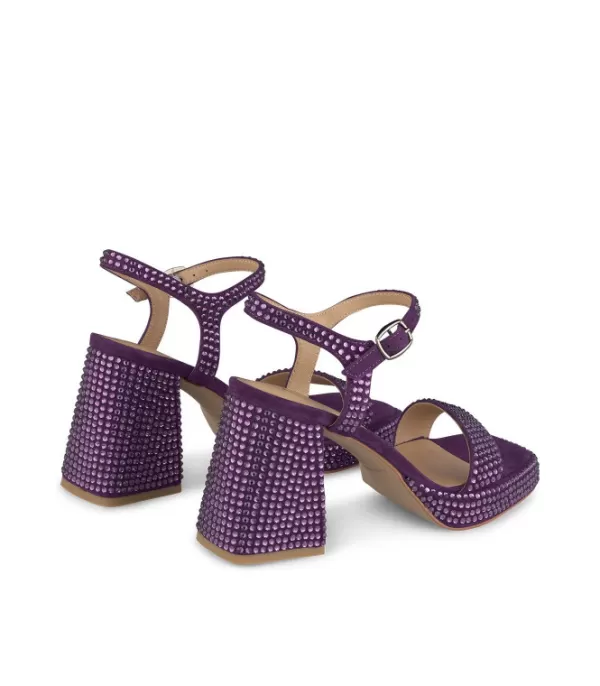 Sandalia Con Tacón Bloque. Cubierto Con Diamantes De Imitación. Cierre Con Hebilla. La Altura Del Tacón Es De 10 Cm.