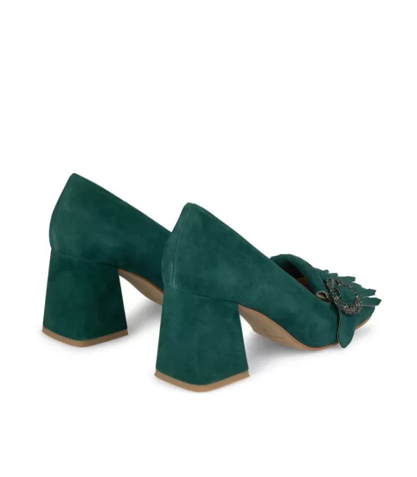 Zapato De Tacón Realizado En Piel Con Adorno Hebilla De Pedrería. La Altura Del Tacón Es De 7,5 Cm.