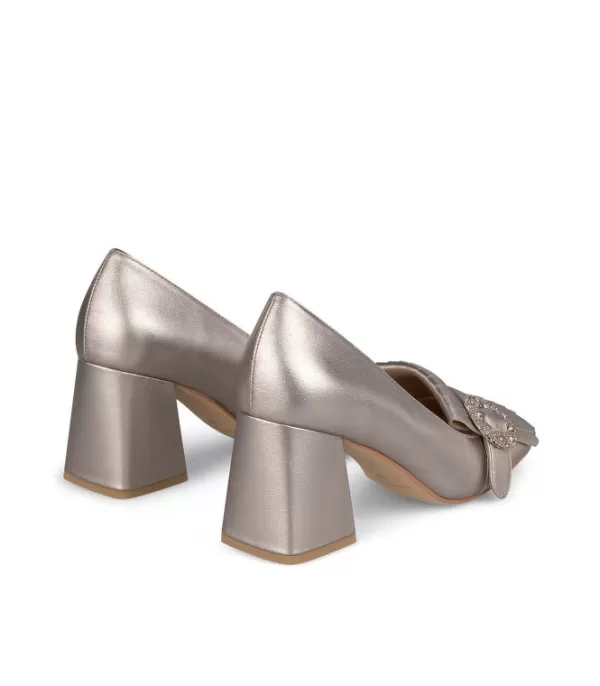Zapato De Tacón Realizado En Piel Con Adorno Hebilla De Pedrería. La Altura Del Tacón Es De 7,5 Cm.