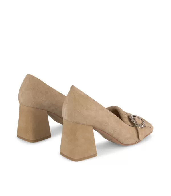 Zapato De Tacón Realizado En Piel Con Adorno Hebilla De Pedrería. La Altura Del Tacón Es De 7,5 Cm.