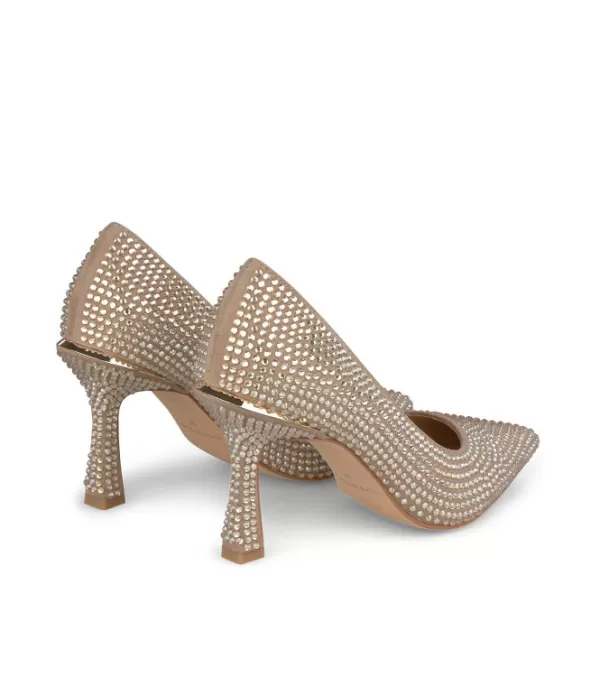 Zapato De Tacón Realizado En Piel Cubierto De Pedrería. Punta Puntiaguda Y Tacón De Aguja. La Altura Del Tacón Es De 8,8 Cm.