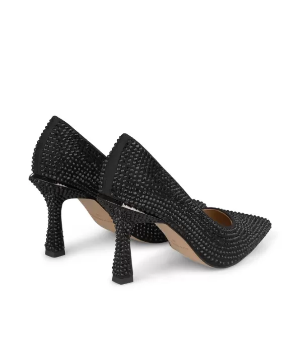 Zapato De Tacón Realizado En Piel Cubierto De Pedrería. Punta Puntiaguda Y Tacón De Aguja. La Altura Del Tacón Es De 8,8 Cm.