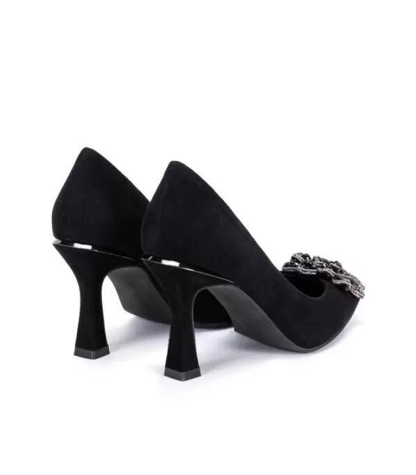 Zapato De Tacón Realizado En Piel Con Adorno De Flores. La Altura Del Tacón Es De 8,8 Cm.